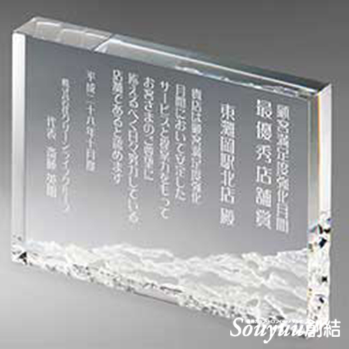 クリスタル製表彰楯・優勝楯クリスタルアワードAKS-1745 商品詳細 熱圧縮成形部分 タテ型参考商品 ヨコ型参考商品 Aサイズ H170/W125/T25mm 重量:約1.360g本体:光学ガラス製 一部熱圧縮成形縦横兼用/買い物かご内「彫刻内容書き込み欄」からご指示ください 19.800円税込(18000円) 1 2 3 4 5 6 7 8 9 10 Bサイズ H140/W100/T20mm 重量:約740g本体:光学ガラス製 一部熱圧縮成形縦横兼用/買い物かご内「彫刻内容書き込み欄」からご指示ください 17.325円税込(15750円) 1 2 3 4 5 6 7 8 9 10 10,000円(税込11,000円) 以上のご注文で送料無料・彫刻代金デザイン代金無料です。 彫刻文字一覧・手書きサイン・ロゴ・ギフトなど製作に必要な情報のご紹介です。 彫刻文字一覧見本です。様々なタイプの文字書体をお選び頂けます。詳しくはこちらのページをどうぞ。 手書きのサインも条件により彫刻できます。より詳しい内容はこちらのページをご参考にしてください。 会社/団体ロゴ等も条件により彫刻できます。より詳しい内容はこちらのページをご参考にしてください。 文面送付のデータ形式などについてのご説明です。Win or Mac。 SOUYUU.JPにて販売しているカップのサイズについての説明です(図解入り)。 カップやトロフィーに欠かせないペナントです。文字印刷もOKのオススメ商品です。 贈り物にギフト包装をお選び頂けます。もちろんリボンも選択可能です。